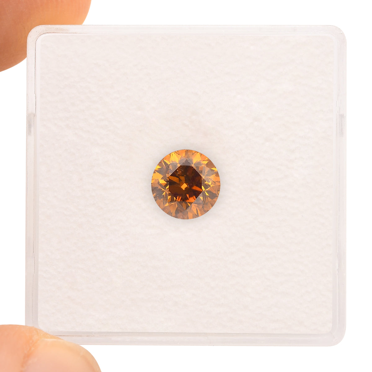 1.00 carat, Fancy Deep Yellowish Orange, Round shape Diamond with SI2 clarity, graded by GIA. A splendid Orange Diamond with a remarkable Cognac color tone saturation and super luster. The stone has Very Good polish and Fair symmetry.