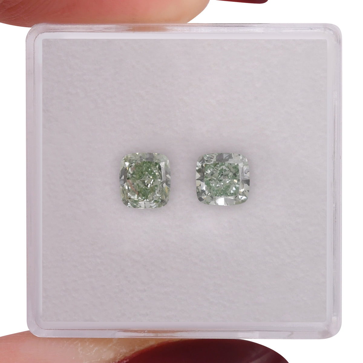 1.21 Carat Fancy Intense Green Cushion Diamonds SI2