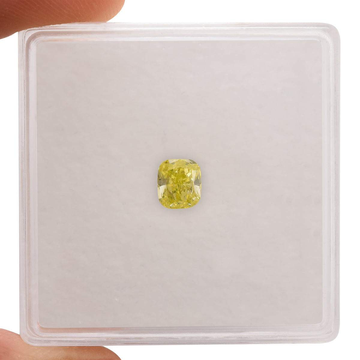 0.38 Carat Fancy Intense Green Yellow Cushion Diamond SI2 GIA