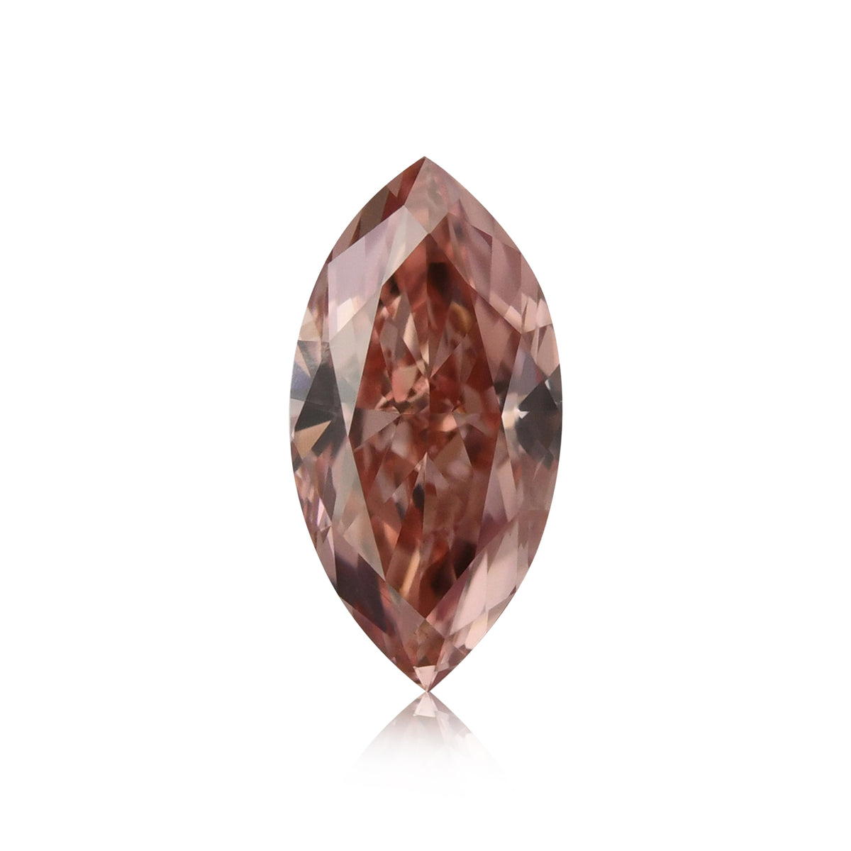 0.30 carat, Fancy Intense Orangy Pink, marquise diamond with I1 clarity, graded by GIA. A wonderful pink diamond with a berry color face up. The stone has Good polish and Good symmetry.