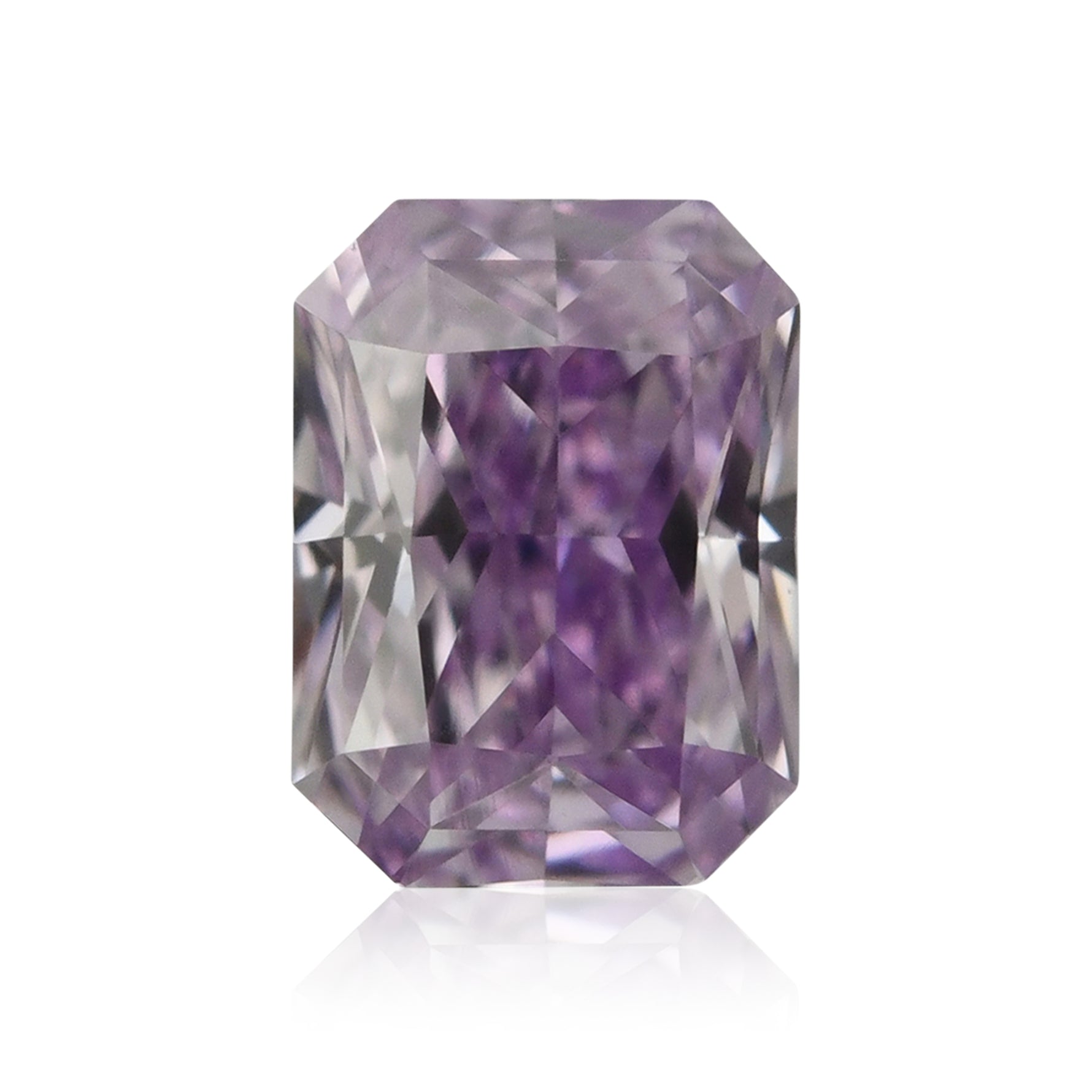 0.15 carat, Fancy Intense Pinkish Purple, radiant diamond with VS2 clarity, graded by GIA. A beautiful purple diamond with a lively lilac color face up. Clarity graded by our in house GIA GG Graduate Gemologist.