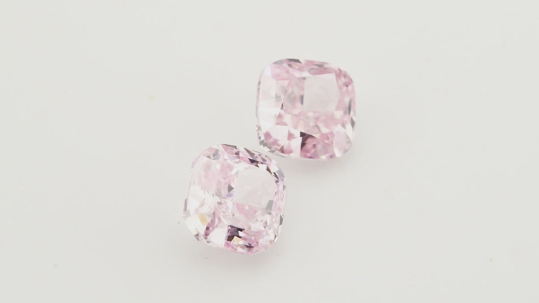 This pair features 1.10 carats of Fancy Intense Purplish Pink cushion-cut diamonds, graded VS2 for clarity by GIA. Their rare, vibrant hue and excellent clarity make them a remarkable choice for collectors and connoisseurs seeking exceptional color and precision-cut brilliance. Ideal for custom jewelry designs.