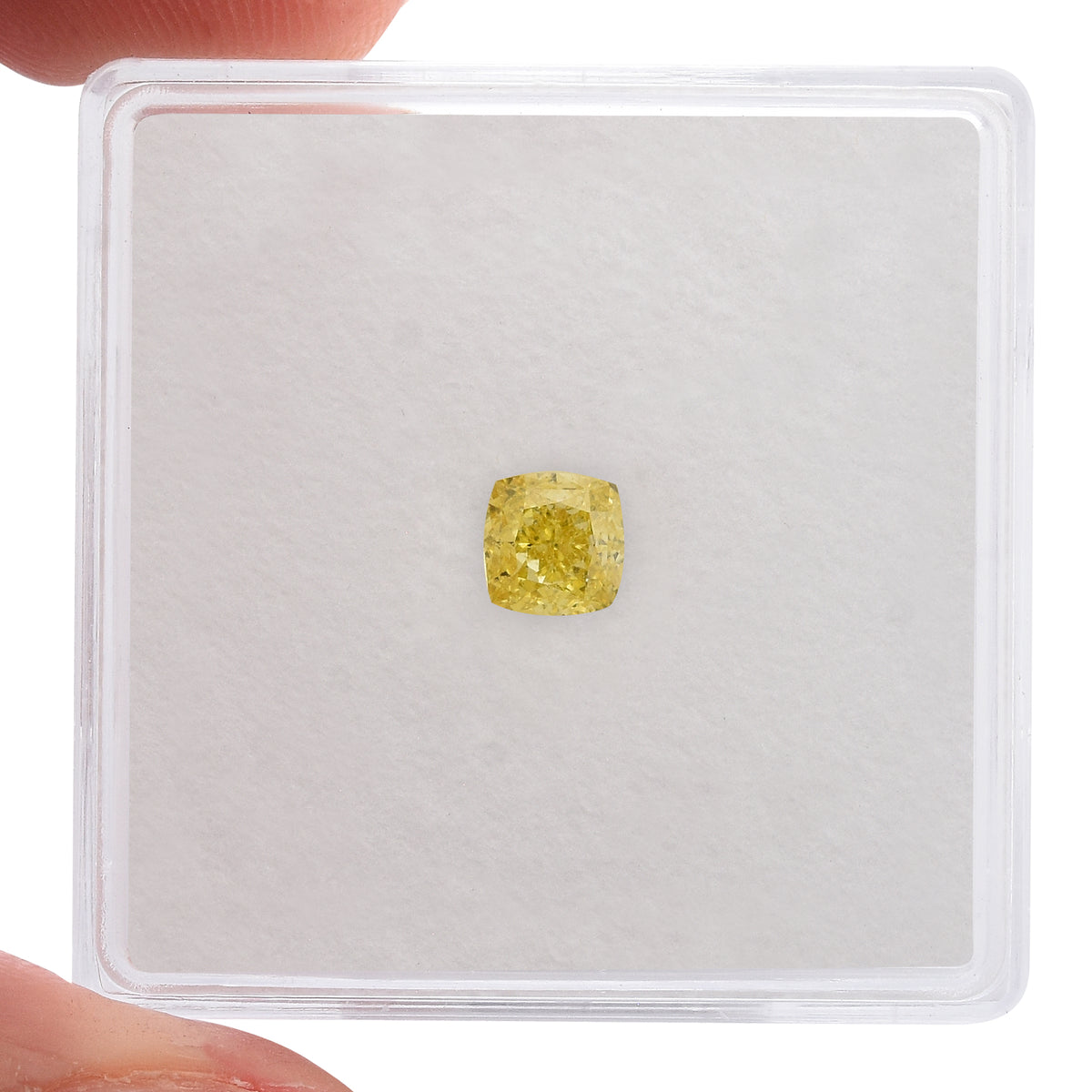 0.52 Carat Fancy Intense Yellow Cushion Diamond SI1 GIA