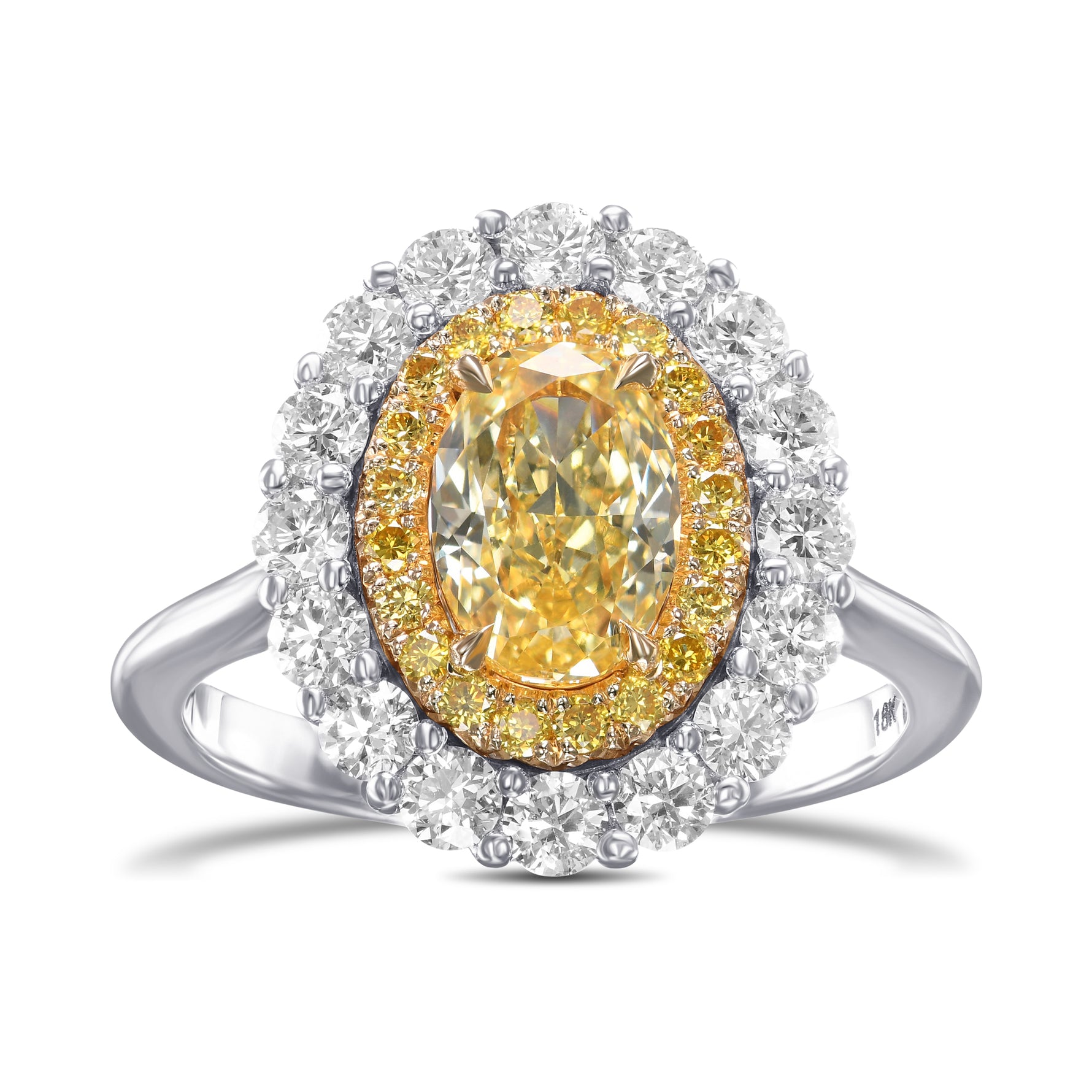 Fancy Intense Yellow Oval Double Halo Diamond Ring