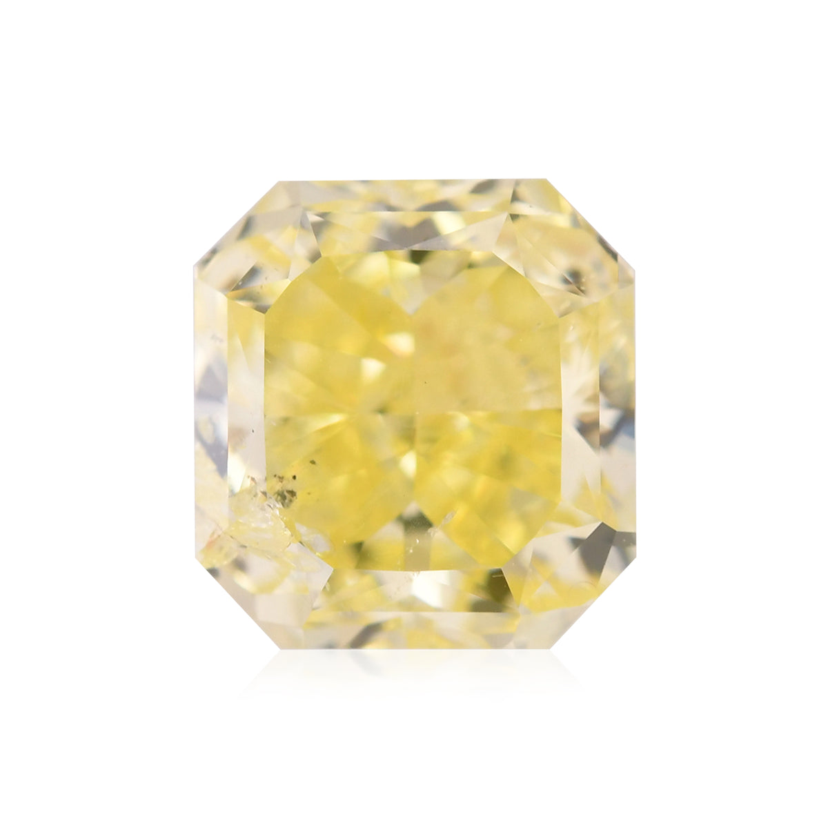 0.94 carat, Fancy Intense Yellow, Radiant shape Diamond with I1 clarity, graded by GIA. A delightful Yellow Diamond that's full of luster.