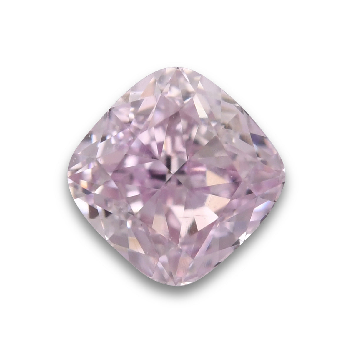 This 0.32 carat cushion-shaped diamond features a rare Fancy Light Purplish Pink hue, certified by GIA with VS2 clarity. Its excellent polish and very good symmetry enhance the stone's brilliance and refined appearance.