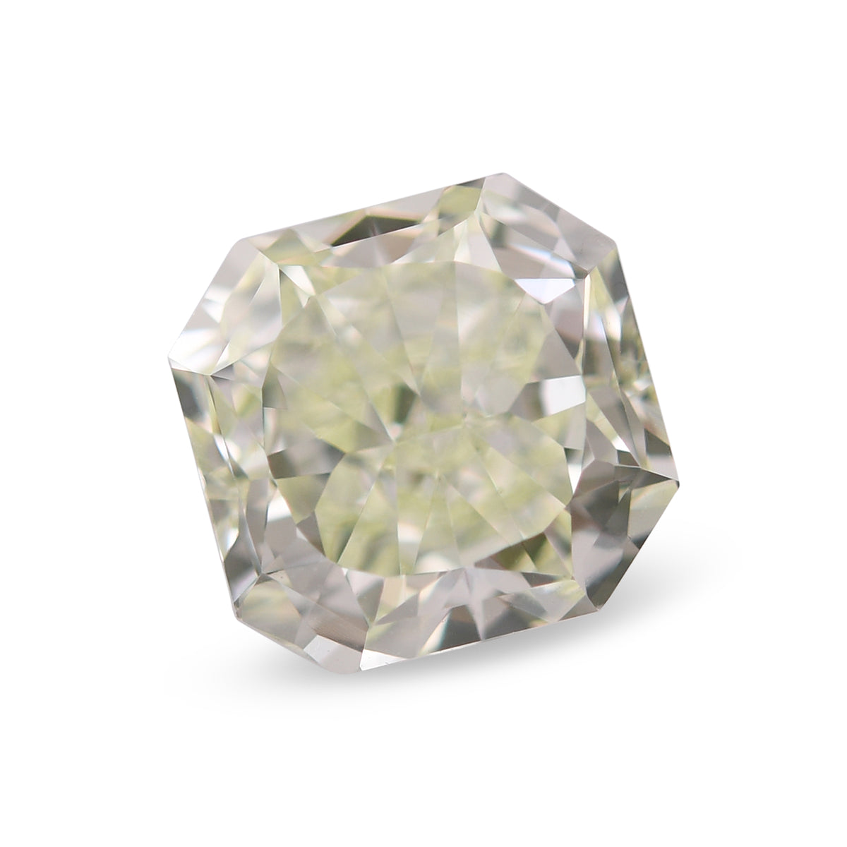 Discover the brilliance of this 1.46 carat Fancy Light Yellow Green radiant diamond, graded VS2 by GIA. Its vibrant color and excellent polish highlight exceptional luster, while good symmetry ensures a captivating sparkle.