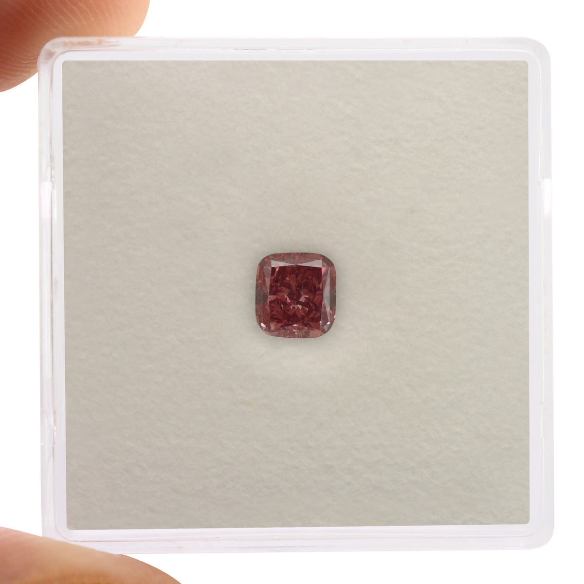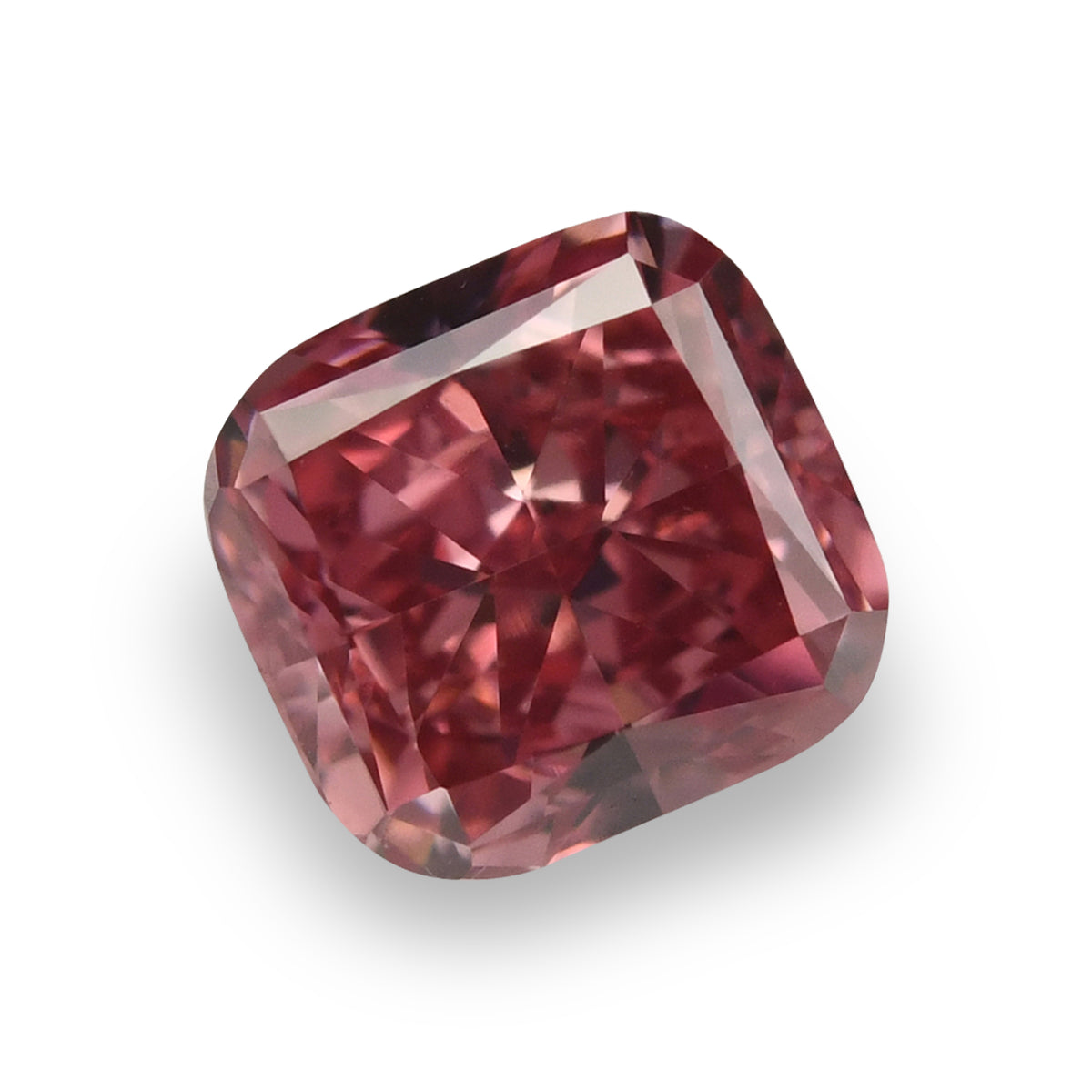 0.63 carat, Fancy Vivid Pink, cushion diamond with VS2 clarity, graded by GIA. A remarkable pink diamond with a dominant plum color face up. The stone has Very Good polish and Good symmetry.