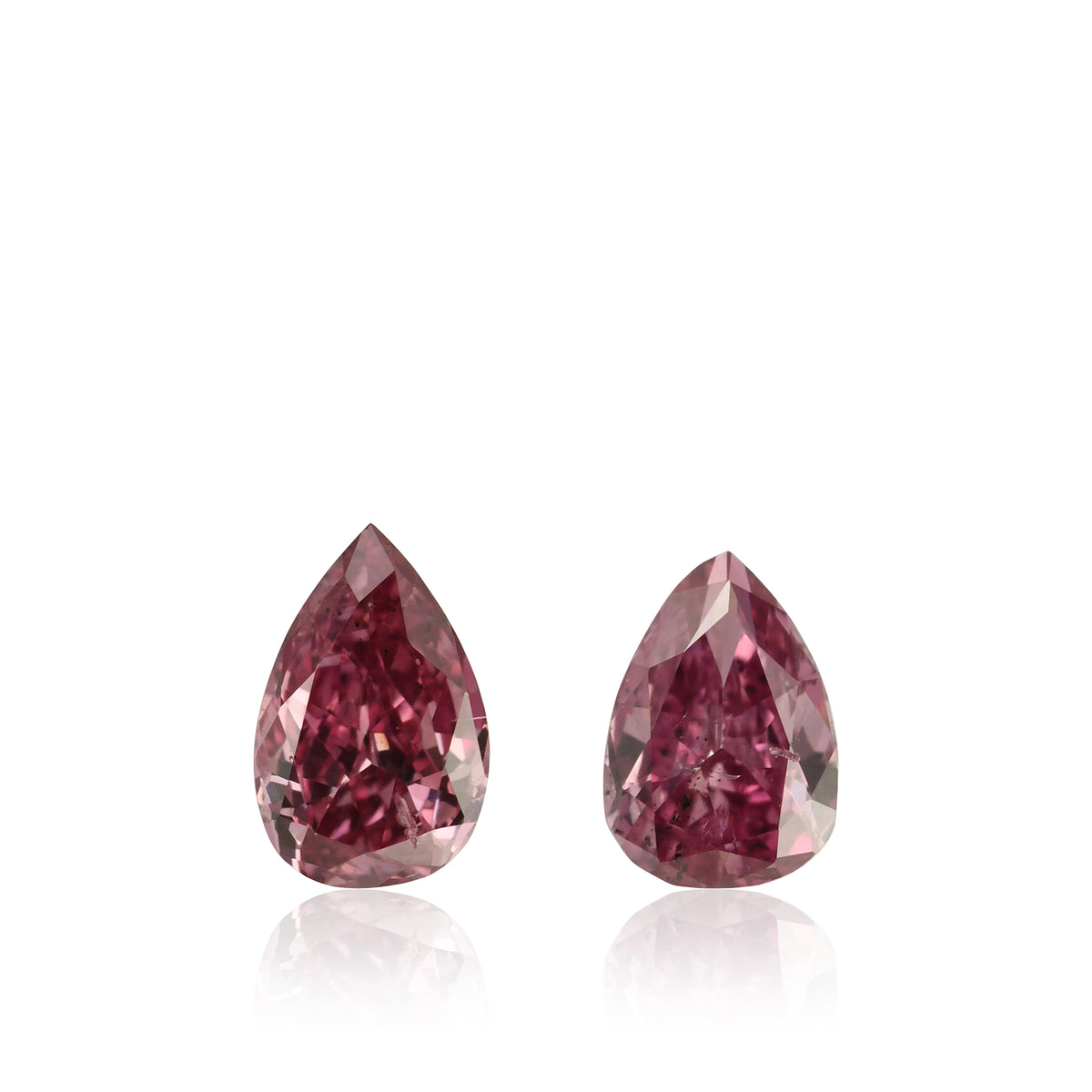 A distinguished pair of pear-shaped diamonds totaling 0.26 carats, each certified by GIA with a rare Fancy Vivid purplish pink color grade. SI2 clarity ensures strong visual transparency with minimal inclusions. These gemstones represent exceptional rarity in fancy colored diamonds, making them highly desirable for bespoke jewelry creation or serious collectors seeking distinctive investment pieces. Clarity graded by our in house GIA GG gemologist.