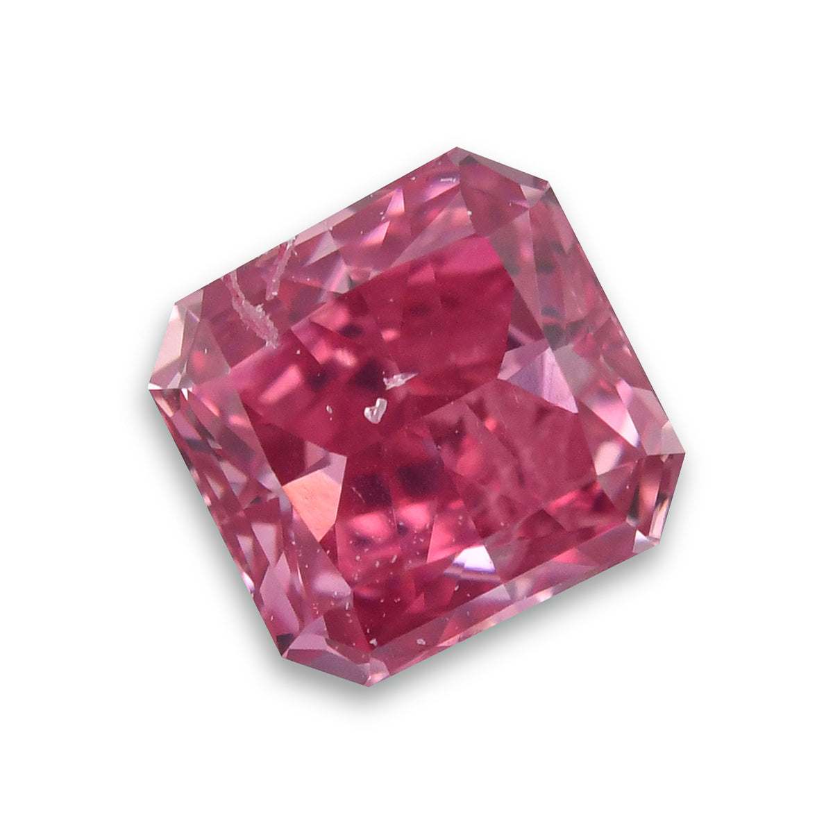 0.31 carat, Fancy Vivid Purplish Pink, Radiant shape Diamond with SI2 clarity, graded by GIA. An incredible Pink Diamond that has a strong color face up. The stone has Good polish and Good symmetry.