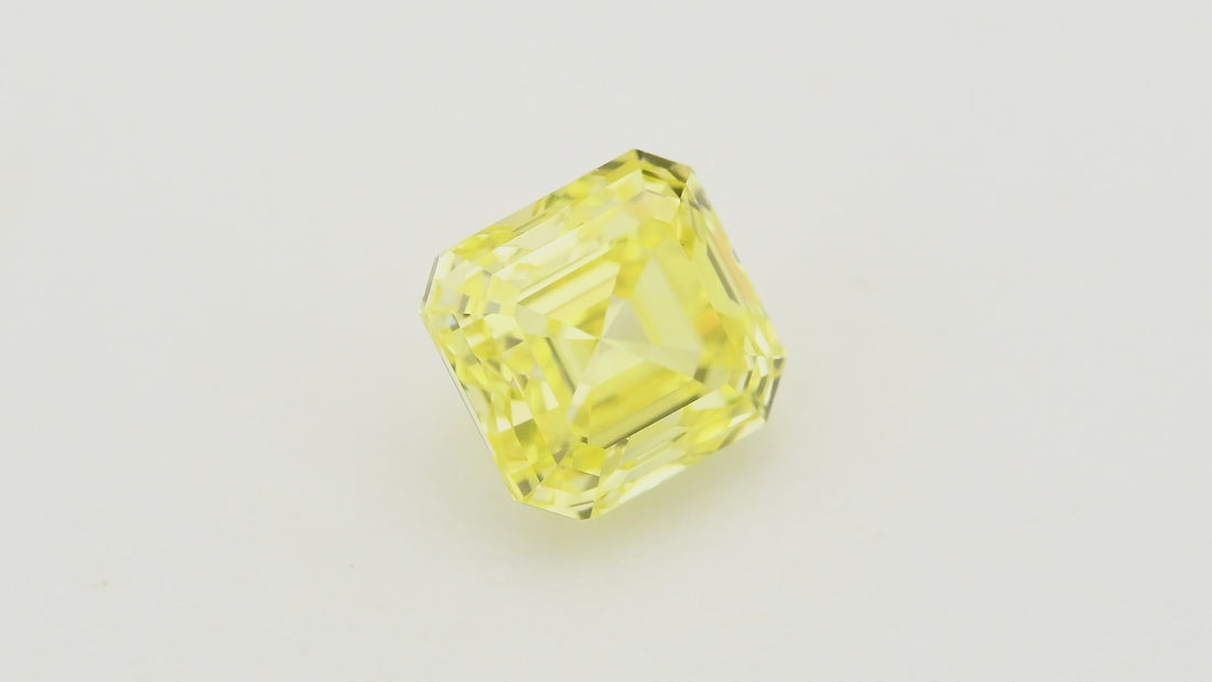 This 0.71 carat Asscher diamond features a rare Fancy Vivid Yellow color with SI1 clarity, certified by GIA for authenticity and quality.