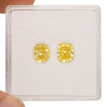 A lovely pair of Fancy Vivid Yellow, Cushion shape Diamonds, 1.26cts, with VS2 clarity, certified with GIA. The stones face-up beautifully and can be purchased as a loose pair or set as a pair of earrings in a Leibish setting style or custom design.