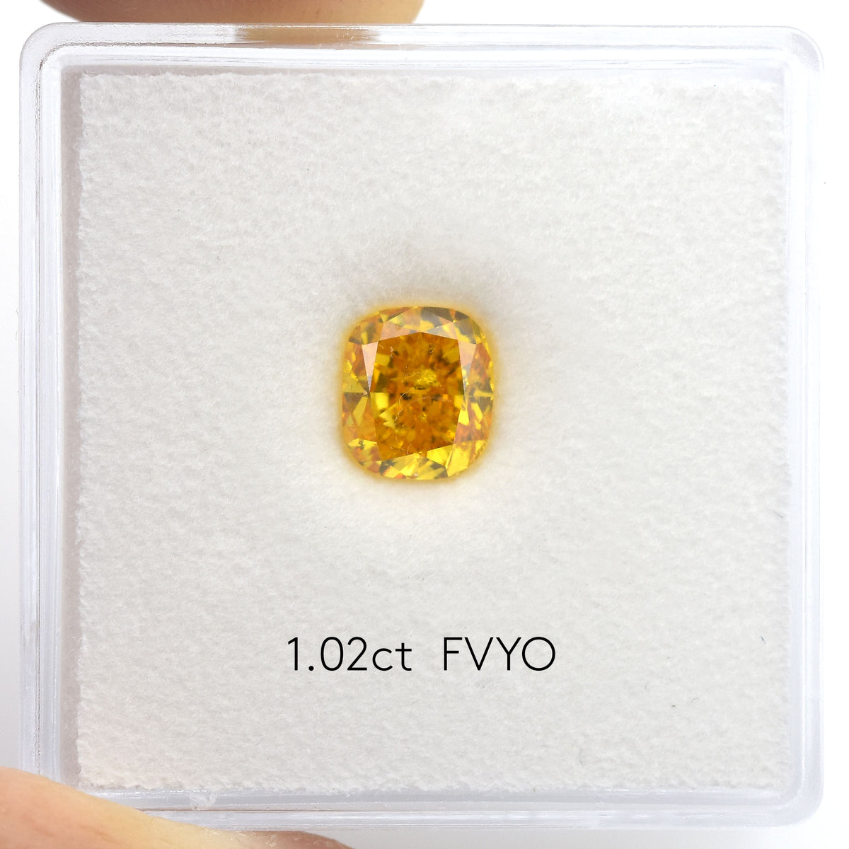 1.02 Carat Fancy Vivid Yellow Orange Cushion Diamond (I1) GIA