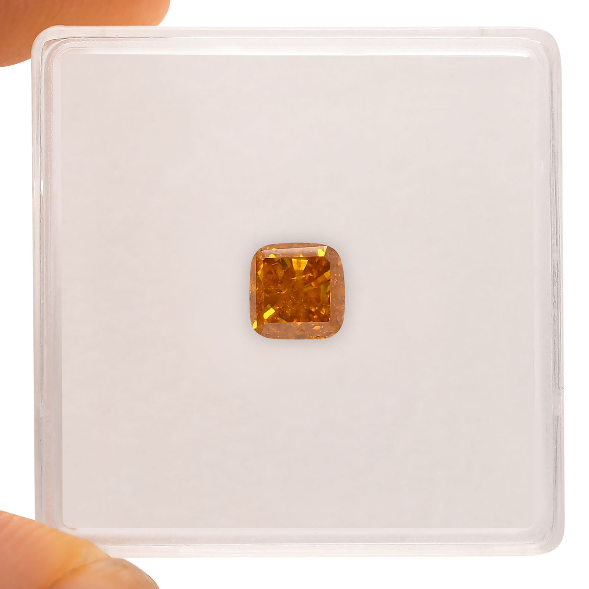 0.96 Carat Fancy Vivid Yellow Orange Cushion Diamond (SI2) GIA