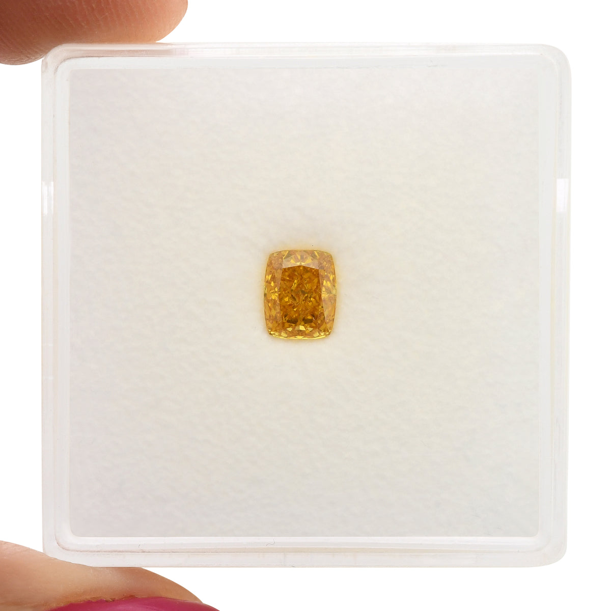 0.44 Carat Fancy Vivid Yellow Orange Cushion Diamond VS1 GIA