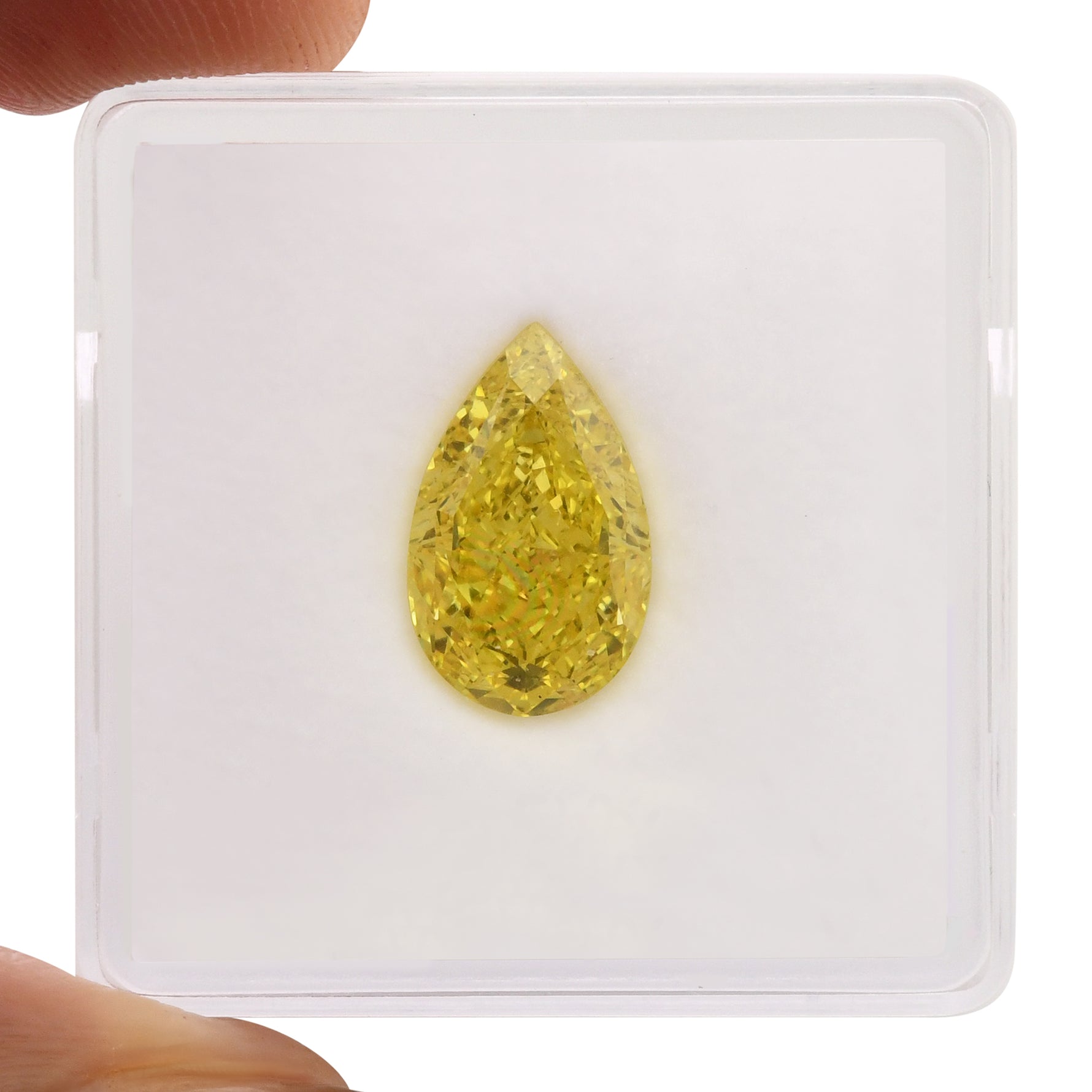 A stunning 3.01-carat pear-shaped diamond showcasing an exceptionally rare Fancy Vivid yellow hue. Certified VS1 clarity by the GIA, this stone demonstrates excellent light performance and minimal inclusions. The elegant pear cut maximizes color saturation while providing brilliant sparkle, making it an ideal centerpiece for a distinctive engagement ring or bespoke jewelry creation.