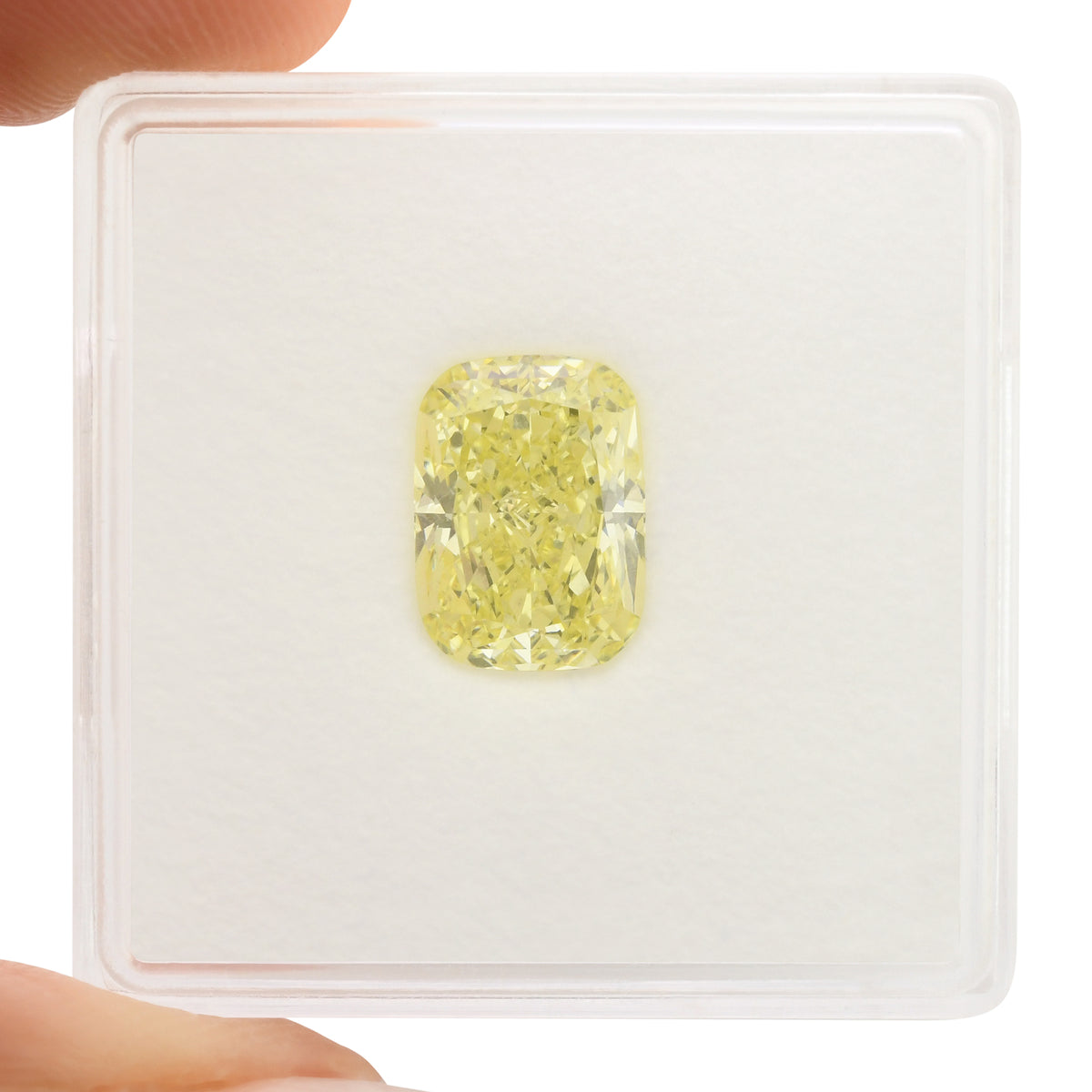 This 2.51 carat Fancy Yellow Cushion Diamond VS2, GIA certified, offers vibrant color and excellent clarity in a stunning cushion cut, perfect for a unique and elegant look.