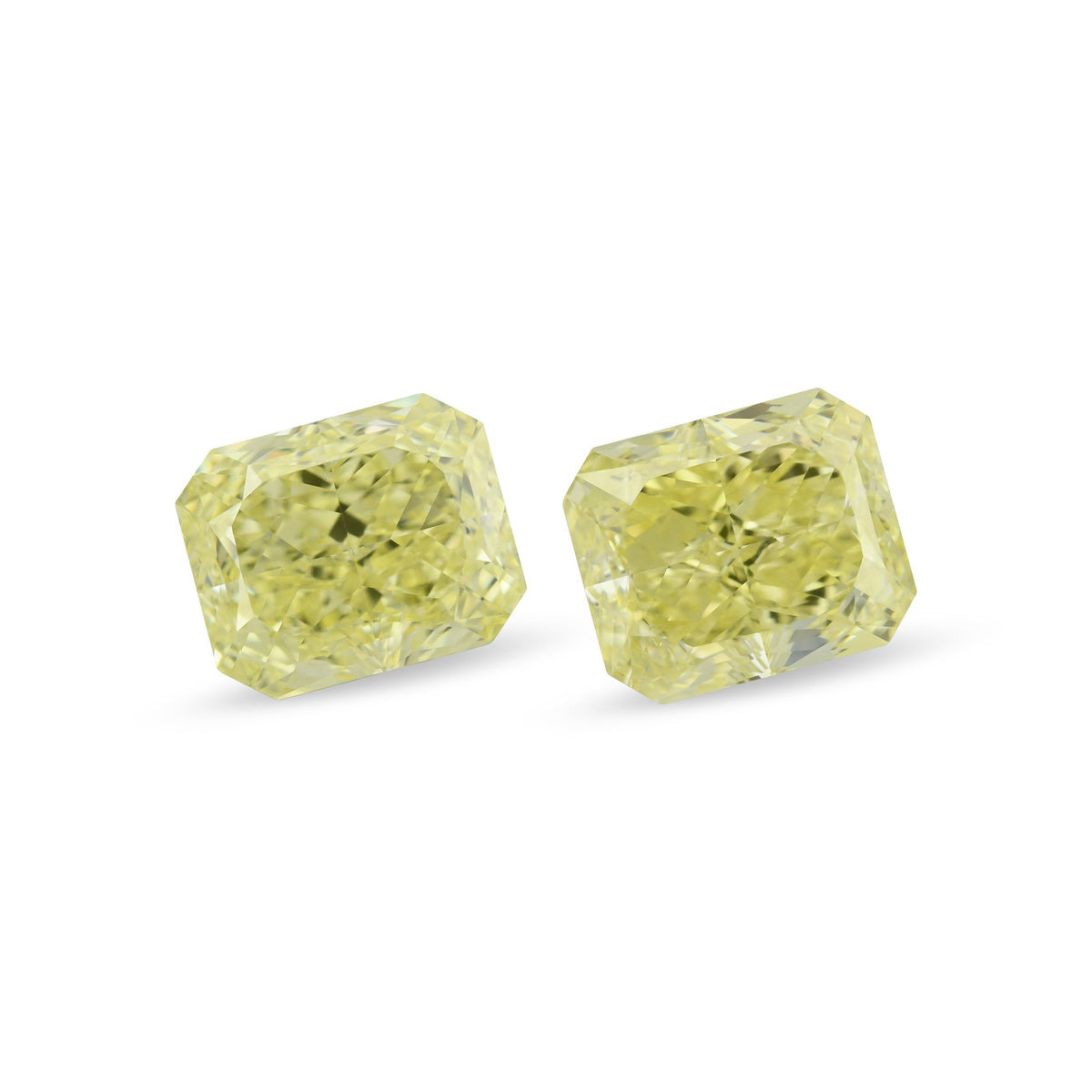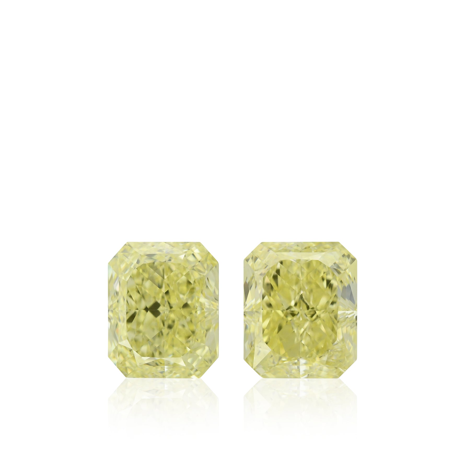 A beautiful pair of Fancy Yellow radiant diamonds, 2.13cts, VVS2 clarity, graded by GIA. The stones have a vibrant color tone and can be purchased as a loose pair or set as a pair of earrings in a Leibish setting style or custom design.