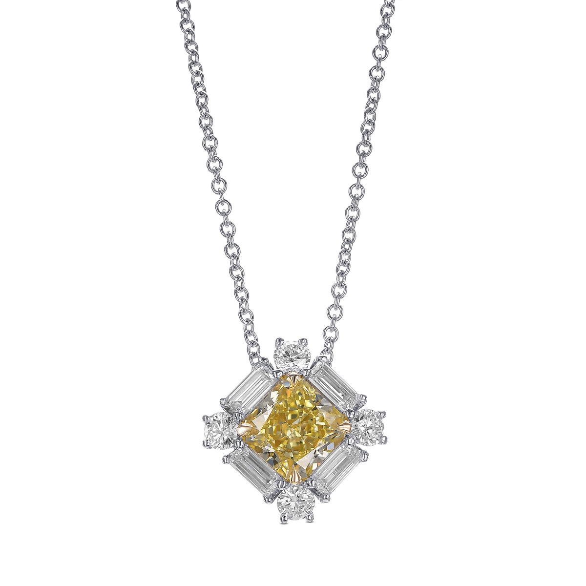 Fancy Yellow Radiant and Baguette Diamond Halo Pendant