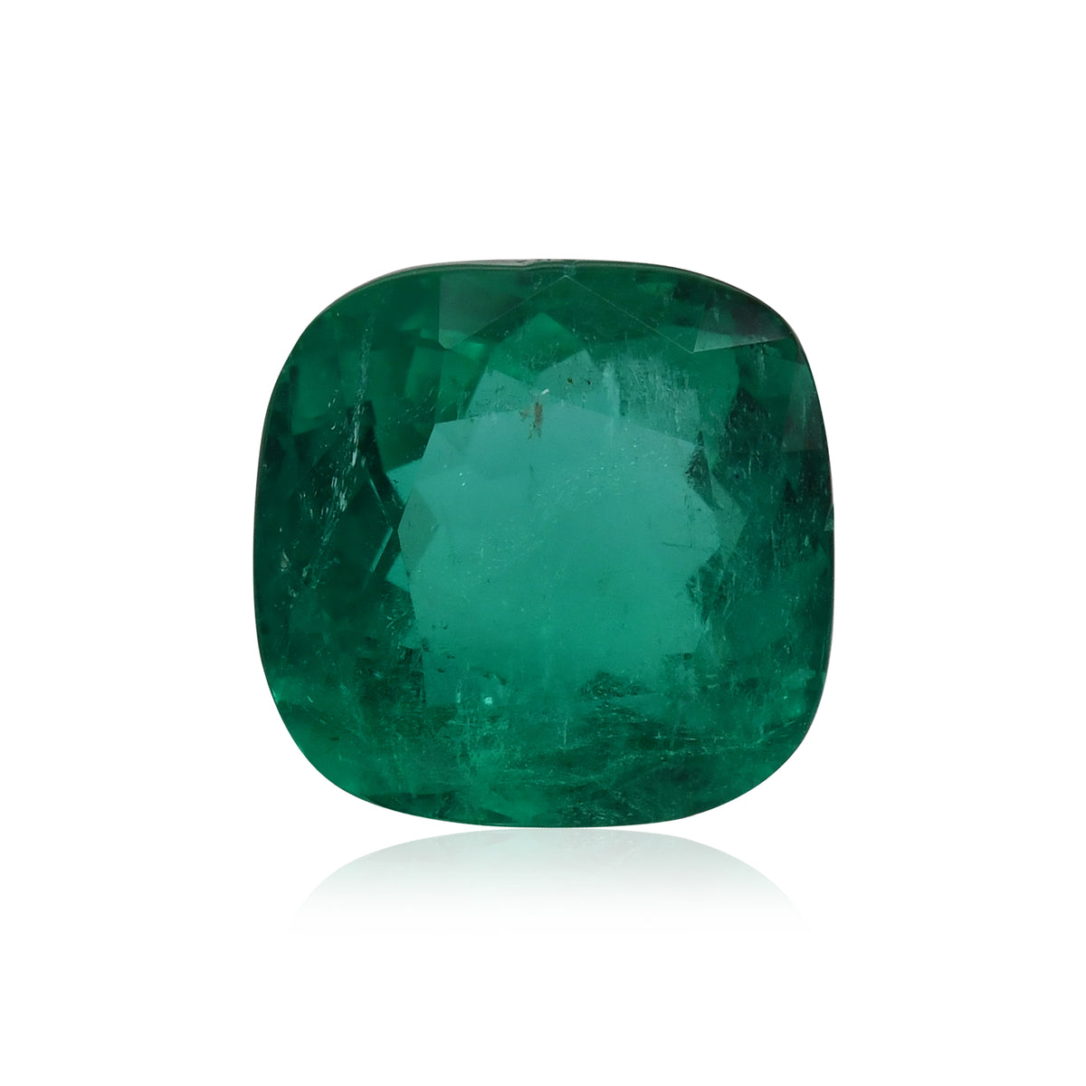 7.37 carat, Vivid Green, Cushion shape Emerald, graded by CD. An incredible Green Gemstone that's full of fire.
