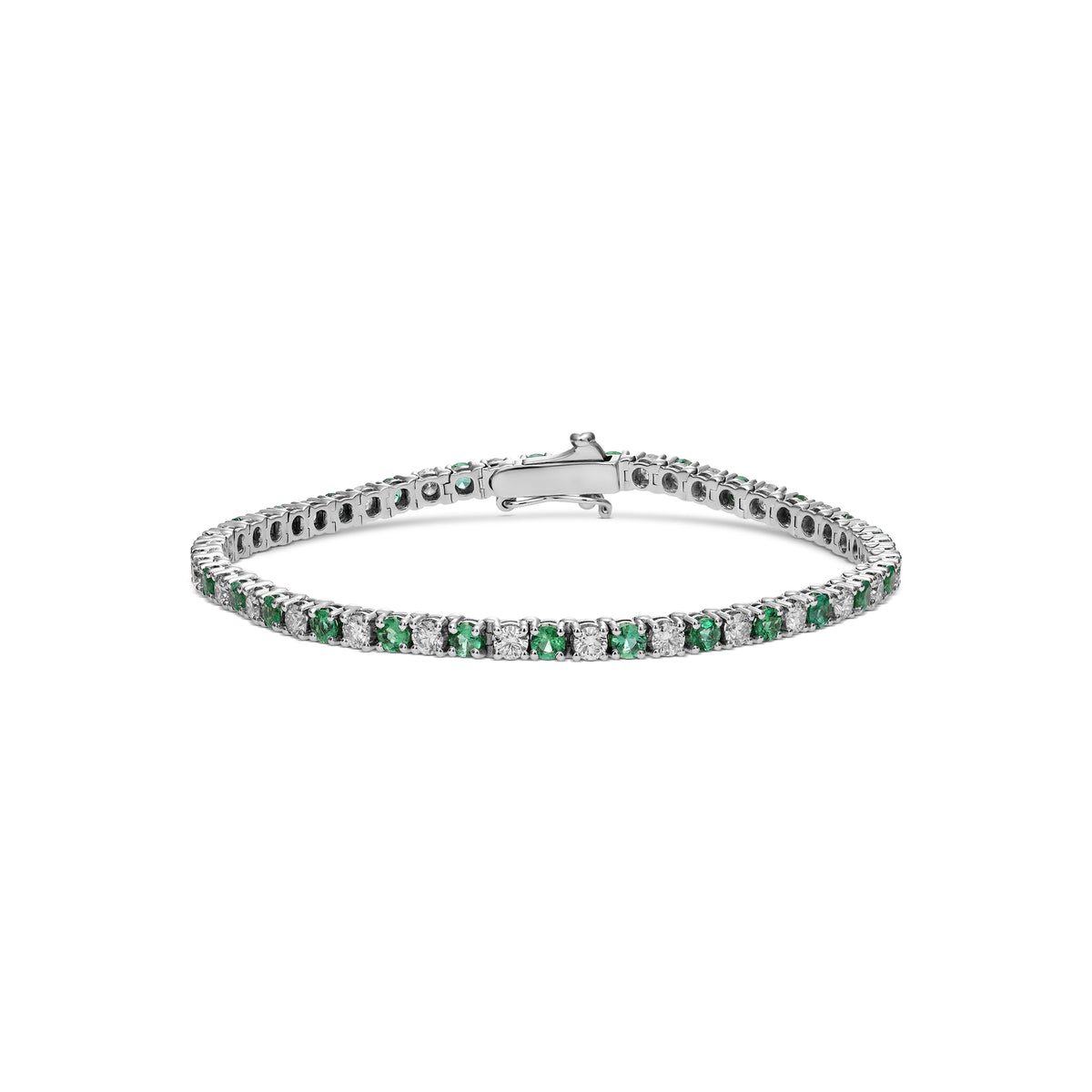 Green Emeralds and Diamonds Tennis Bracelet