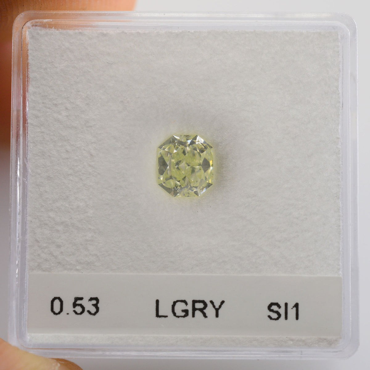 0.53 Carat Light Green Yellow Radiant Diamond SI1 GIA
