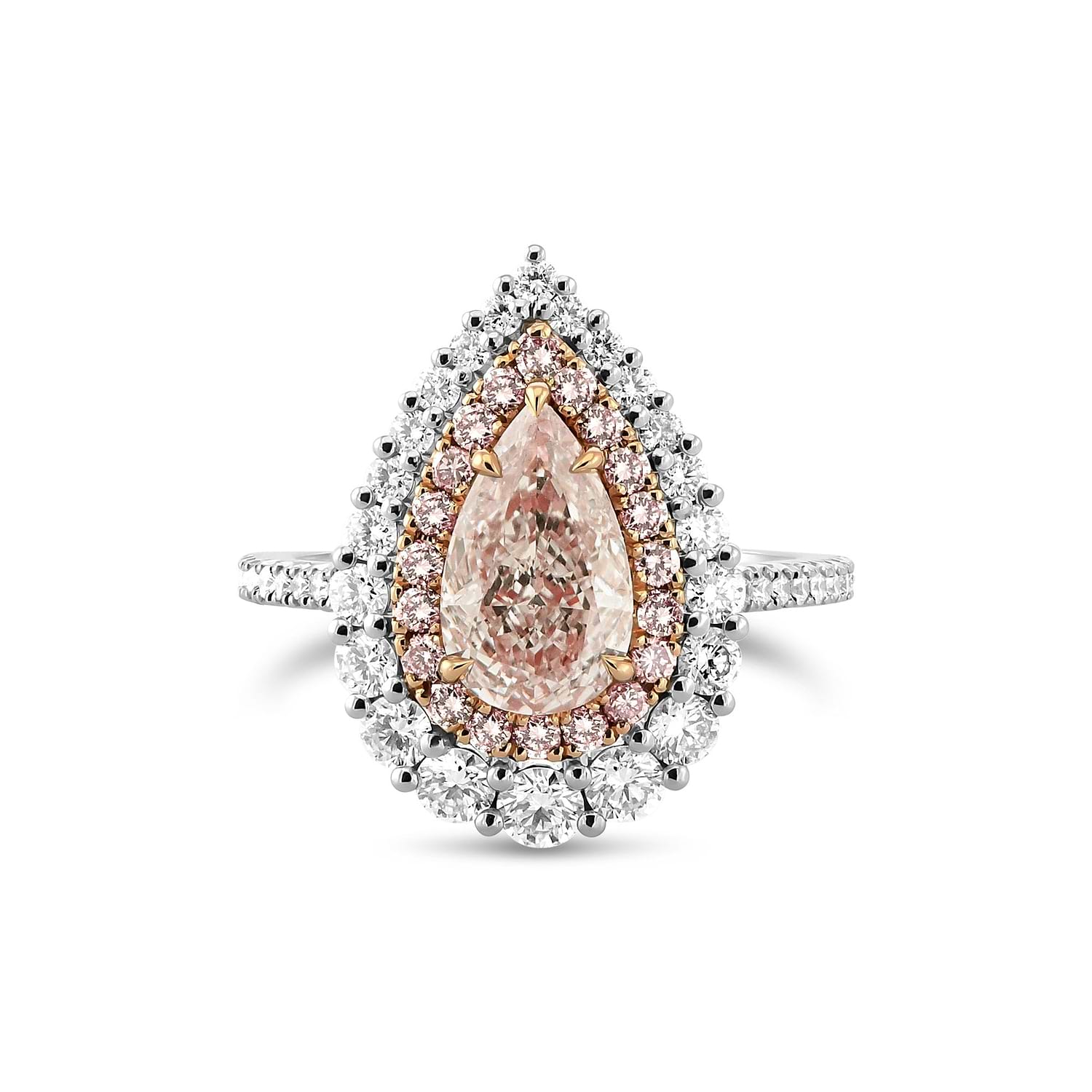 Light Pinkish Brown Pear Diamond Double Halo Ring