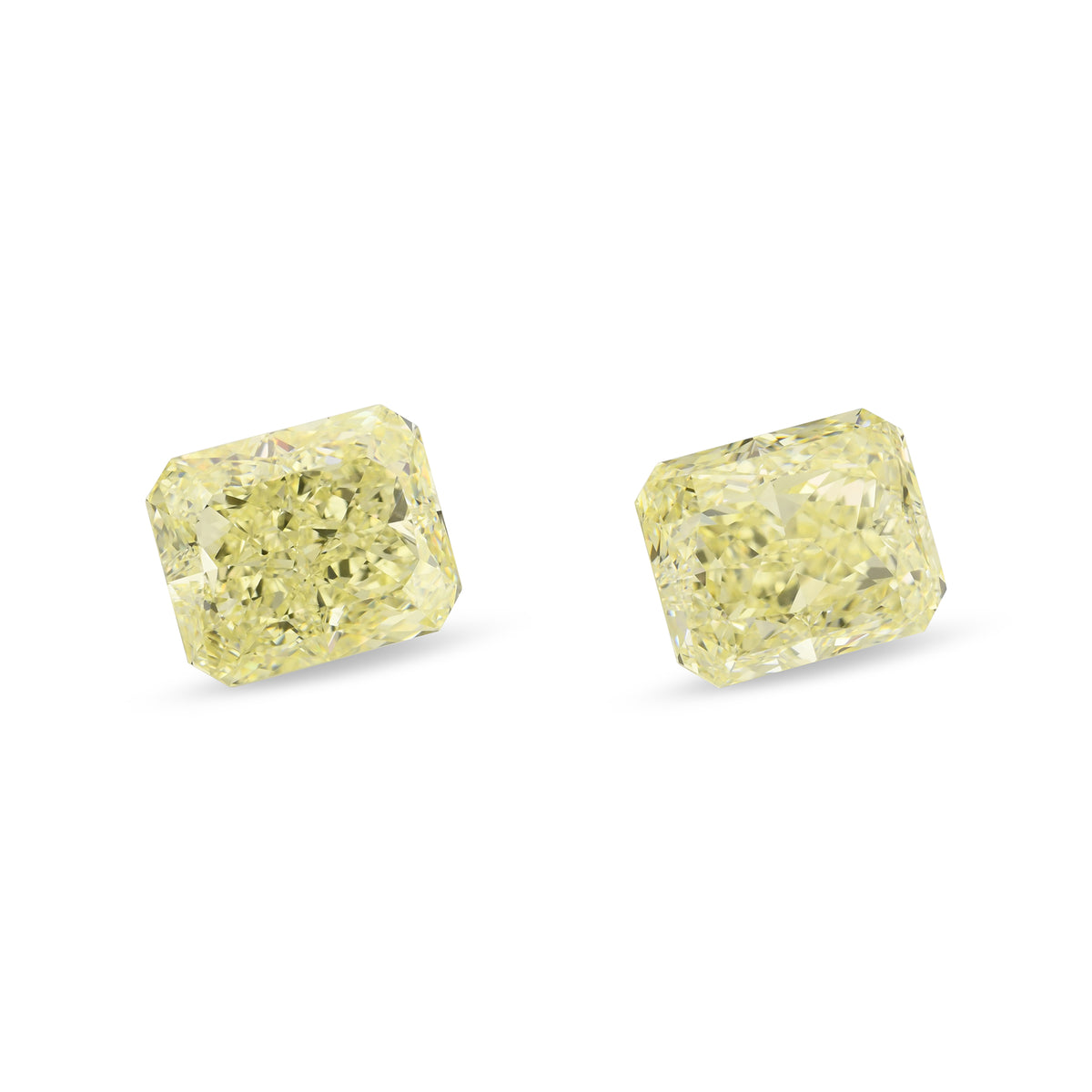A stunning pair of light yellow radiant diamonds totaling 10.07 carats, each graded VS2 and VS1 for exceptional clarity. These beautifully cut stones showcase the warm, sophisticated glow of fancy light yellow diamonds, making them ideal for creating a truly distinctive piece of fine jewelry. Perfect for engagement rings, earrings or custom designs that demand both elegance and individuality.