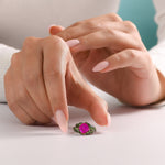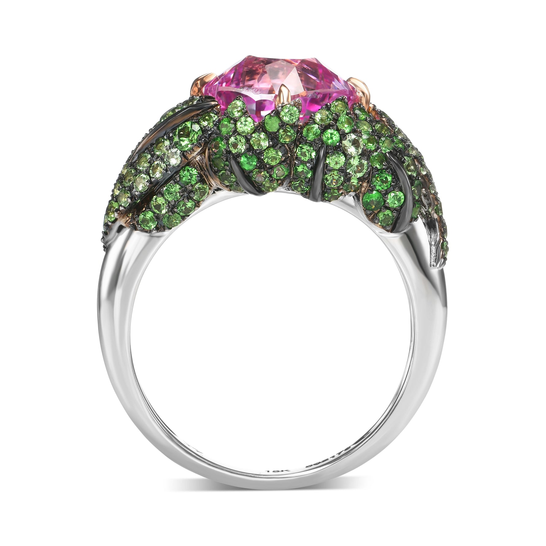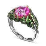 Mogok Vivid Pink Sapphire and Green Tsavorite Bombe Ring