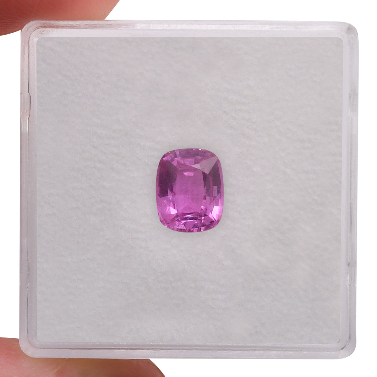 1.44 carat, Pink, Cushion shape Sapphire. An exquisite Pink Gemstone that's simply dazzling to the eye.