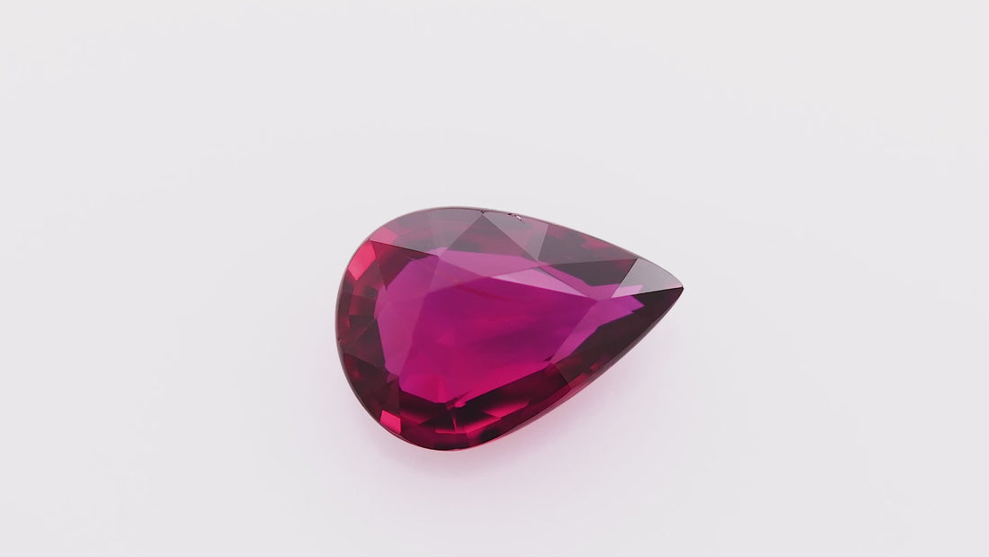 This 2.05 carat pear-shaped ruby from Mozambique dazzles with a vivid red hue and exceptional transparency. Graded by CD and free from heat treatment, it offers natural beauty and rarity, perfect for a striking, elegant statement piece.