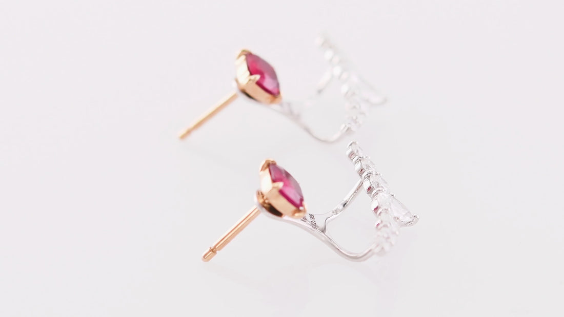 Red Ruby Studs and Diamond Ear Climbers