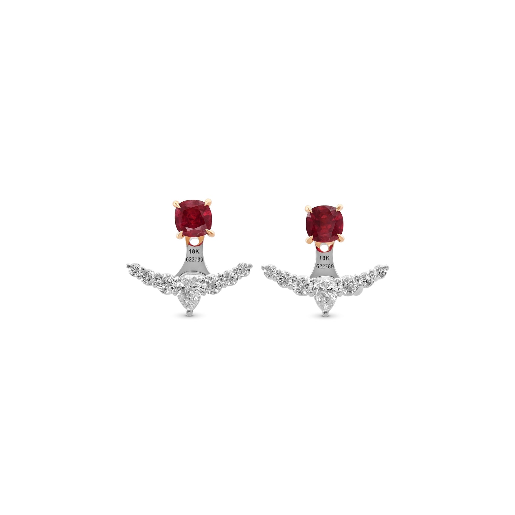 LEIBISH.Red Ruby Studs and Diamond Ear Climbers