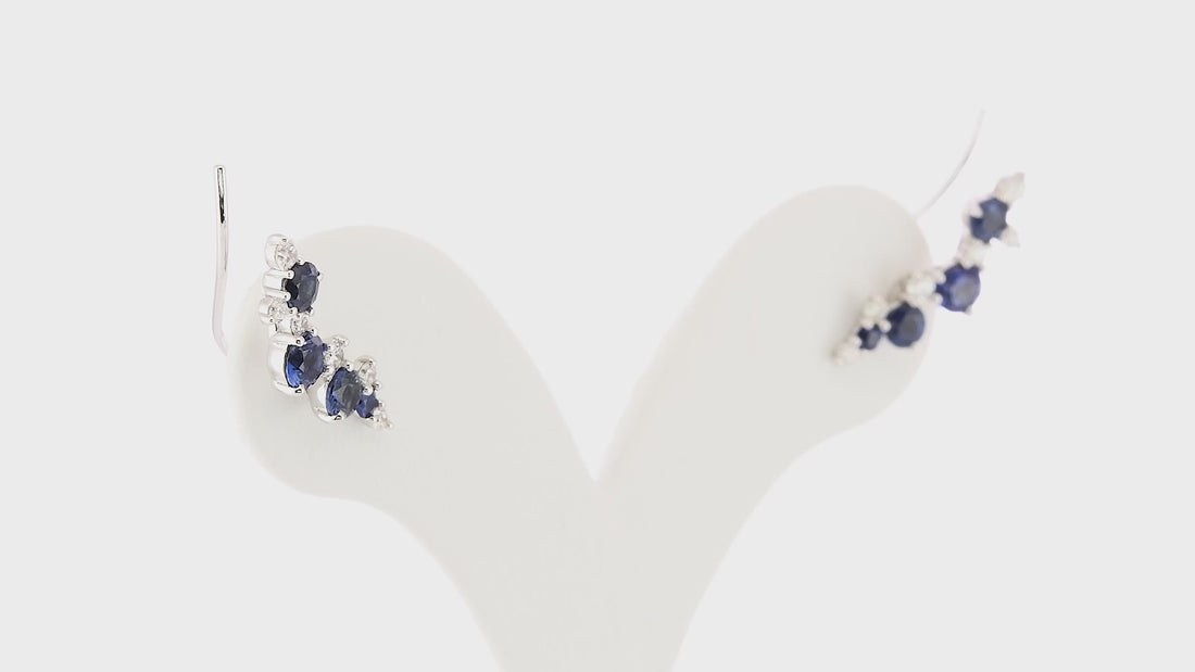 A beautiful pair of round sapphire and diamond cuff earrings, 1.69cts total weight, and styled in a shared prong contemporary style. Mounted in 18K white gold.