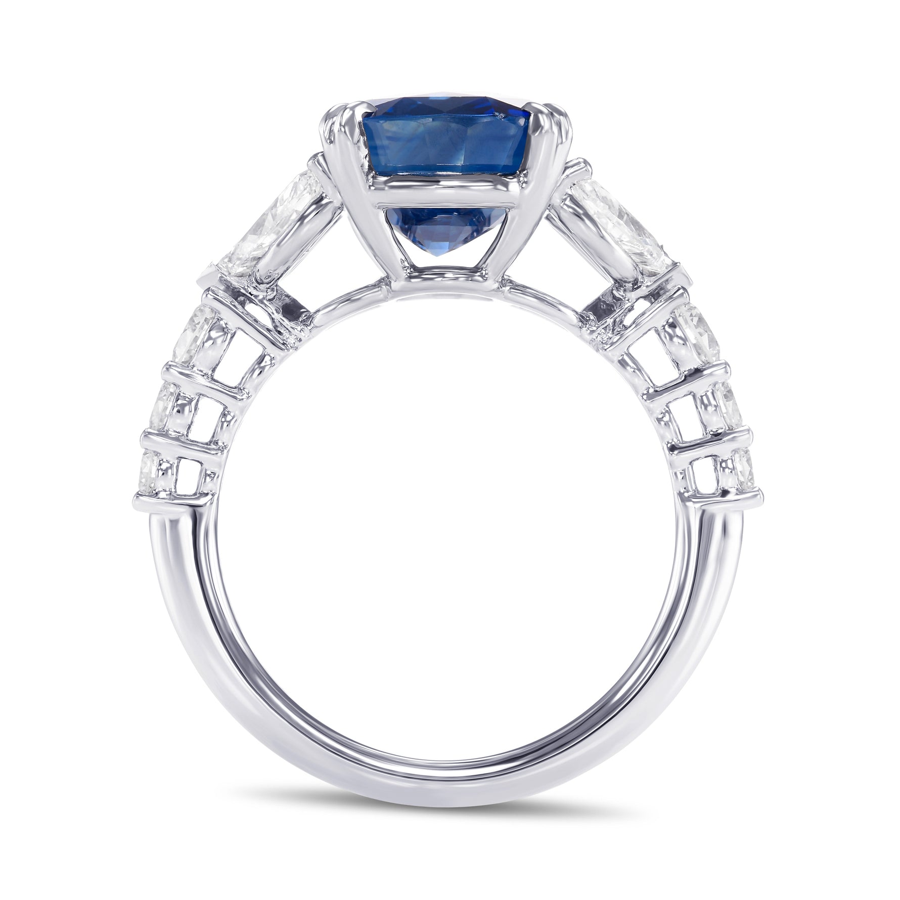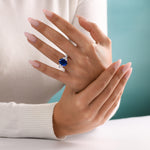 Royal Blue Oval Sapphire and Diamond Side Stone Ring