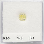 0.60 carat, Light Y-Z Yellow, Radiant Diamond with SI1 clarity, graded by IGI. A lovely Yellow Diamond, with a vibrant sparkle and pretty lemon color.